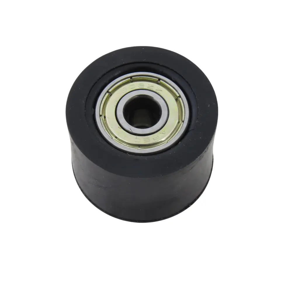 - Високоміцні матеріали: Серцевина ролика виготовлена з металу, що забезпечує структурну цілісність та стійкість до деформацій. Зовнішня частина, що контактує з ланцюгом, виконана з високоякісного зносостійкого полімеру або композитного матеріалу, який мінімізує тертя та шум, а також не пошкоджує ланки ланцюга.