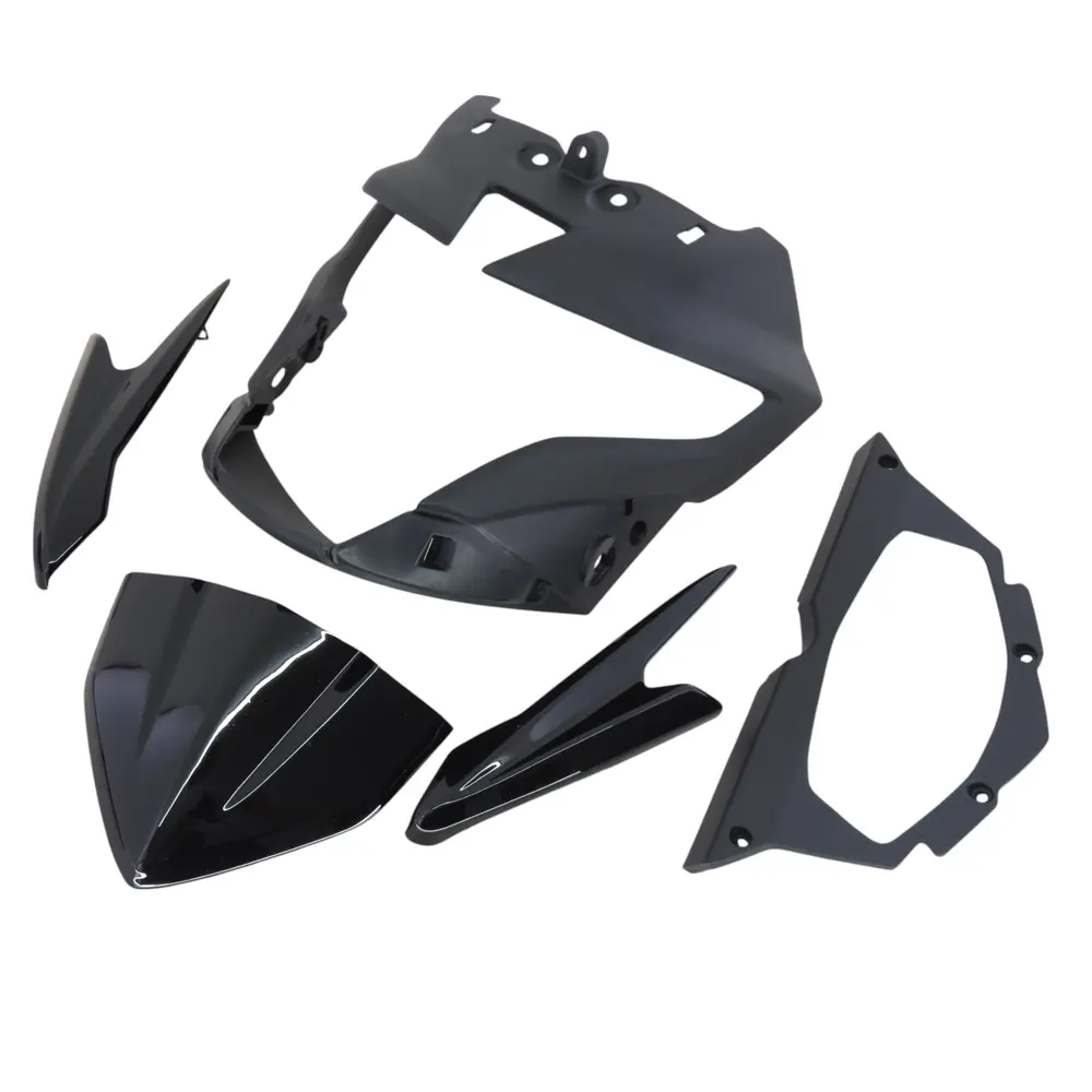 Чорний обтікач фари для Musstang МТ125-8 F4 (FIT II 2023) розроблений з урахуванням сучасних тенденцій у мотодизайні, надаючи вашому мотоциклу більш спортивний та завершений вигляд. Його аеродинамічна форма не тільки візуально покращує силует, але й оптимізує потоки повітря, зменшуючи опір та турбулентність. Матовий або глянцевий чорний колір (залежно від конкретної фактури матеріалу, що гармонійно доповнить штатні елементи мотоцикла) додає солідності та стилю, дозволяючи вашому Musstang виділятися на дорозі. Кожна лінія та вигин обтікача продумані до дрібниць, щоб ідеально поєднуватися з оригінальною конструкцією мотоцикла, створюючи цілісний та гармонійний образ. Цей елемент тюнінгу стане фінальним штрихом у створенні унікального стилю вашого байка.