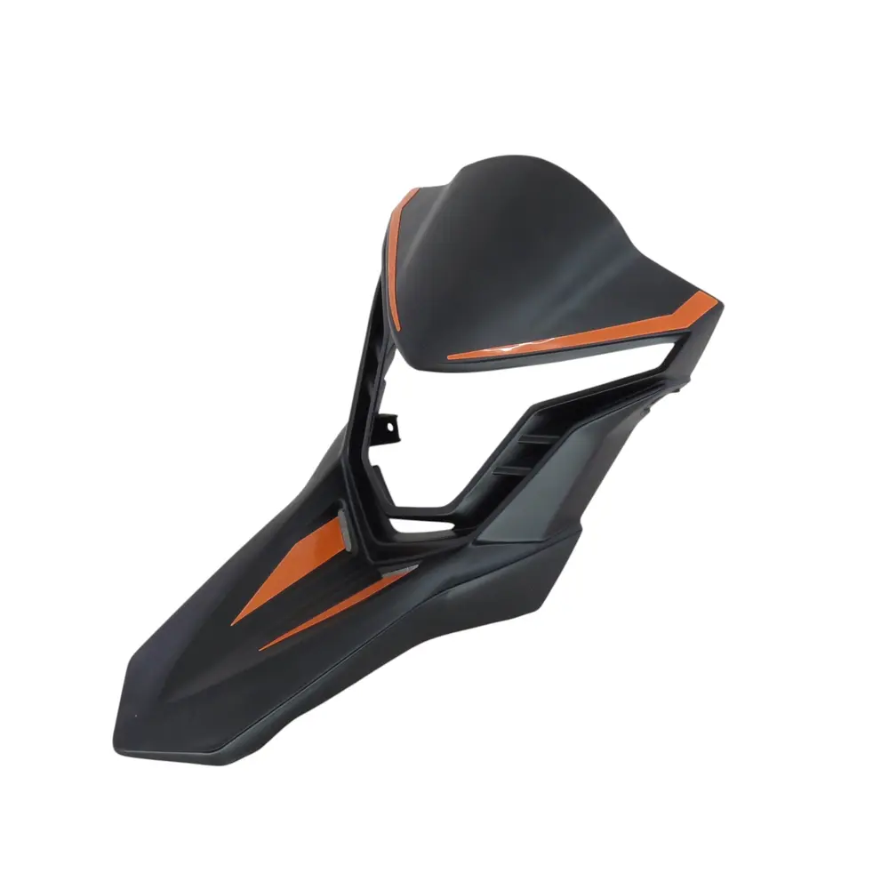 Обтікач фари SPARK SP300T-2 є не просто функціональною деталлю, а й ключовим елементом для створення індивідуального стилю вашого мотоцикла. Його продуманий дизайн ідеально інтегрується у загальні лінії SPARK SP300T-2, створюючи єдиний, гармонійний образ. Комбінація глибокого чорного кольору з контрастними помаранчевими вставками додає мотоциклу агресивності та сучасності. Ці кольори не тільки візуально привабливі, але й підвищують помітність на дорозі, що є важливим аспектом безпеки. Обтікач візуально оновлює передню частину мотоцикла, роблячи його більш виразним та привабливим для поглядів.