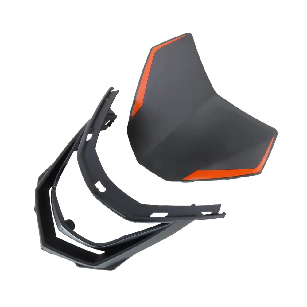 Колірне рішення сіро-помаранчевого комплекту обтікача та спойлера для TEKKEN 250 було обрано не випадково. Сірий колір, як основа, додає стриманості та елегантності, водночас слугуючи чудовим фоном для яскравих помаранчевих акцентів. Ці помаранчеві вставки ідеально перегукуються з фірмовим стилем багатьох спортивних мотоциклів, додаючи динамізму та відчуття швидкості. Обтікач фари має обтічну форму, що плавно інтегрується в передню частину мотоцикла, захищаючи фару від дрібних камінців та бруду, а також зменшуючи опір повітря. Верхній спойлер, у свою чергу, доповнює загальну лінію дизайну, створюючи гармонійний та завершений образ. Завдяки цьому комплекту ваш TEKKEN 250 набуде унікального та впізнаваного стилю, привертаючи захоплені погляди.