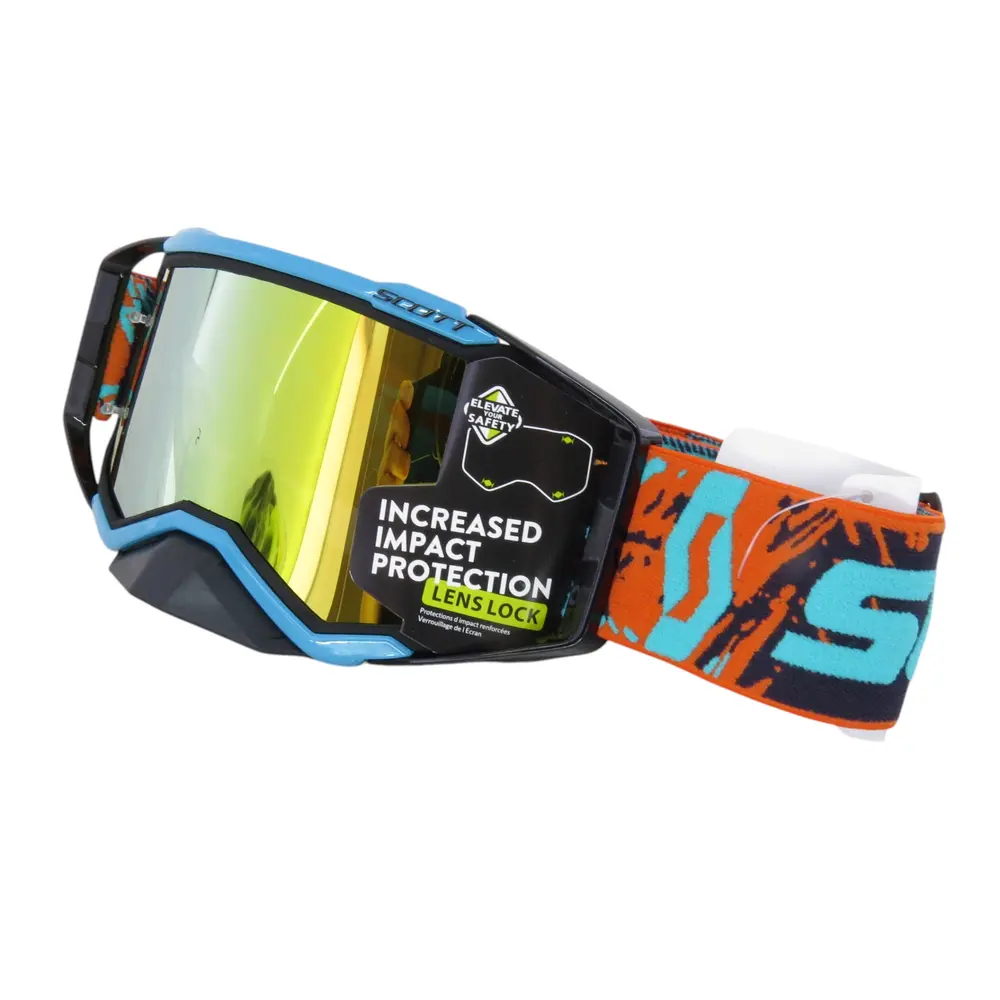 - Система SCOTT Lens Lock: Ця запатентована система фіксації лінзи забезпечує неперевершену надійність. Чотири фіксатори надійно утримують лінзу в оправі, запобігаючи її випаданню навіть при сильних ударах або падіннях. Водночас, вона дозволяє надзвичайно швидко та легко замінювати лінзи, що є незамінним для адаптації до мінливих умов освітлення на трасі.