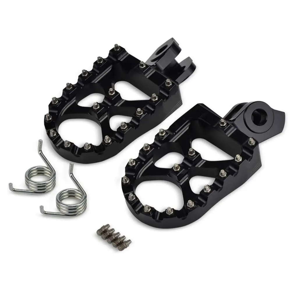 Ці підніжки були створені з урахуванням специфічних вимог агресивної їзди. Вони дозволяють райдеру краще відчувати мотоцикл, ефективніше переносити вагу тіла для маневрування та контролювати його рух на високих швидкостях та складних ділянках. Оптимальне положення ніг та надійний хват забезпечують впевненість під час стрибків, поворотів та проходження нерівностей, мінімізуючи ризик зісковзування ноги та підвищуючи загальну безпеку їзди. Завдяки продуманому дизайну та якісним матеріалам, ці підніжки значно покращують загальну ергономіку мотоцикла, дозволяючи райдеру довше зберігати концентрацію та менше втомлюватися під час тривалих заїздів.