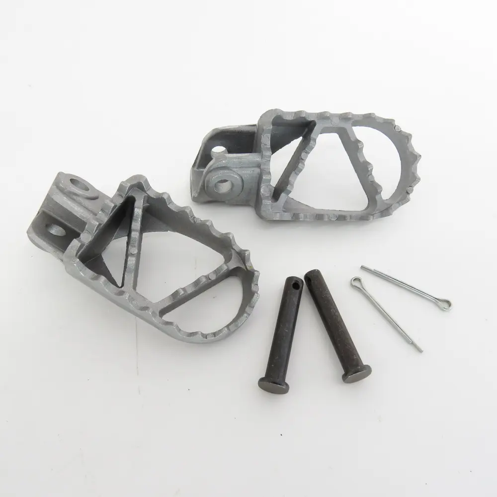 - Профільована поверхня з агресивними зубами: Робоча поверхня підніжки має чітко виражені, гострі зуби, які забезпечують максимальне зчеплення з підошвою мотобот. Така конструкція запобігає ковзанню навіть у вологих, брудних умовах або під час сильних вібрацій. Це дає райдеру впевненість у тому, що його ноги залишаться на місці незалежно від інтенсивності руху.