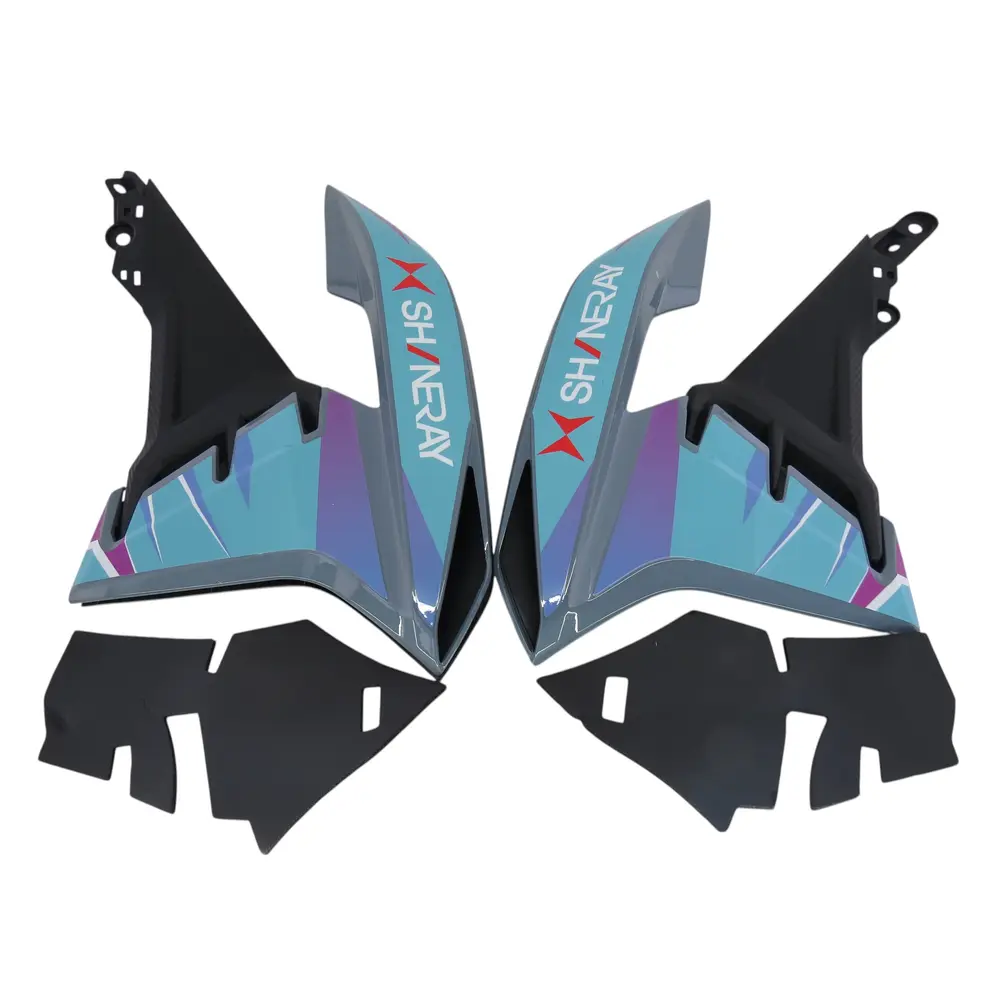 Даний комплект бічного пластику бака призначений для заміни пошкоджених або зношених оригінальних деталей на мотоциклах XY300GY-6C та VXR 300. Виконаний з міцного та довговічного матеріалу, він гарантує стійкість до зовнішніх впливів, таких як удари, подряпини, вплив ультрафіолетових променів та перепади температур. Бірюзовий колір пластику є оригінальним або максимально наближеним до заводського відтінку, що забезпечує гармонійне поєднання з іншими елементами мотоцикла.