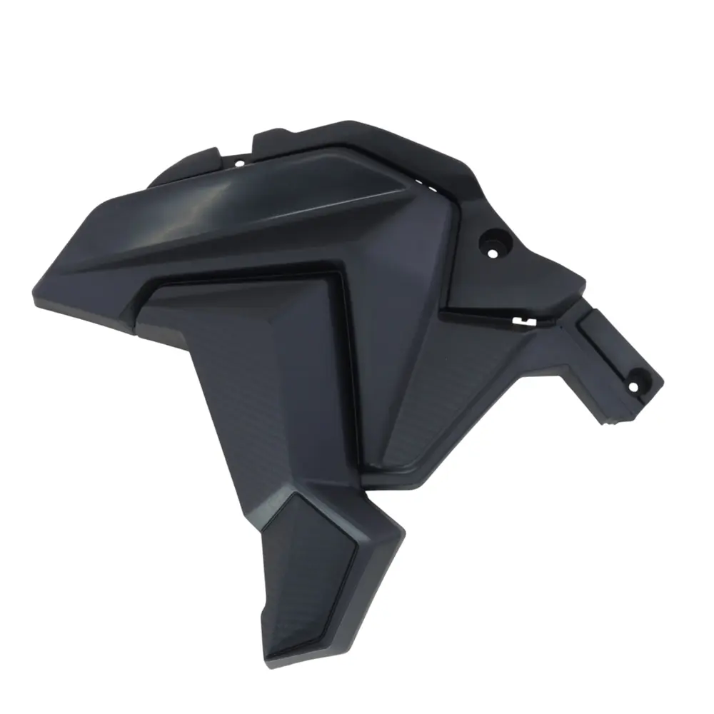 - Захист та безпека: Ефективно захищає внутрішні компоненти мотоцикла від бруду, води, пилу та дрібних каменів, що летять з дороги. Це допомагає запобігти корозії, засміченню та механічним пошкодженням важливих вузлів, таких як проводка, кріплення бака та інші елементи, що знаходяться під цією панеллю.