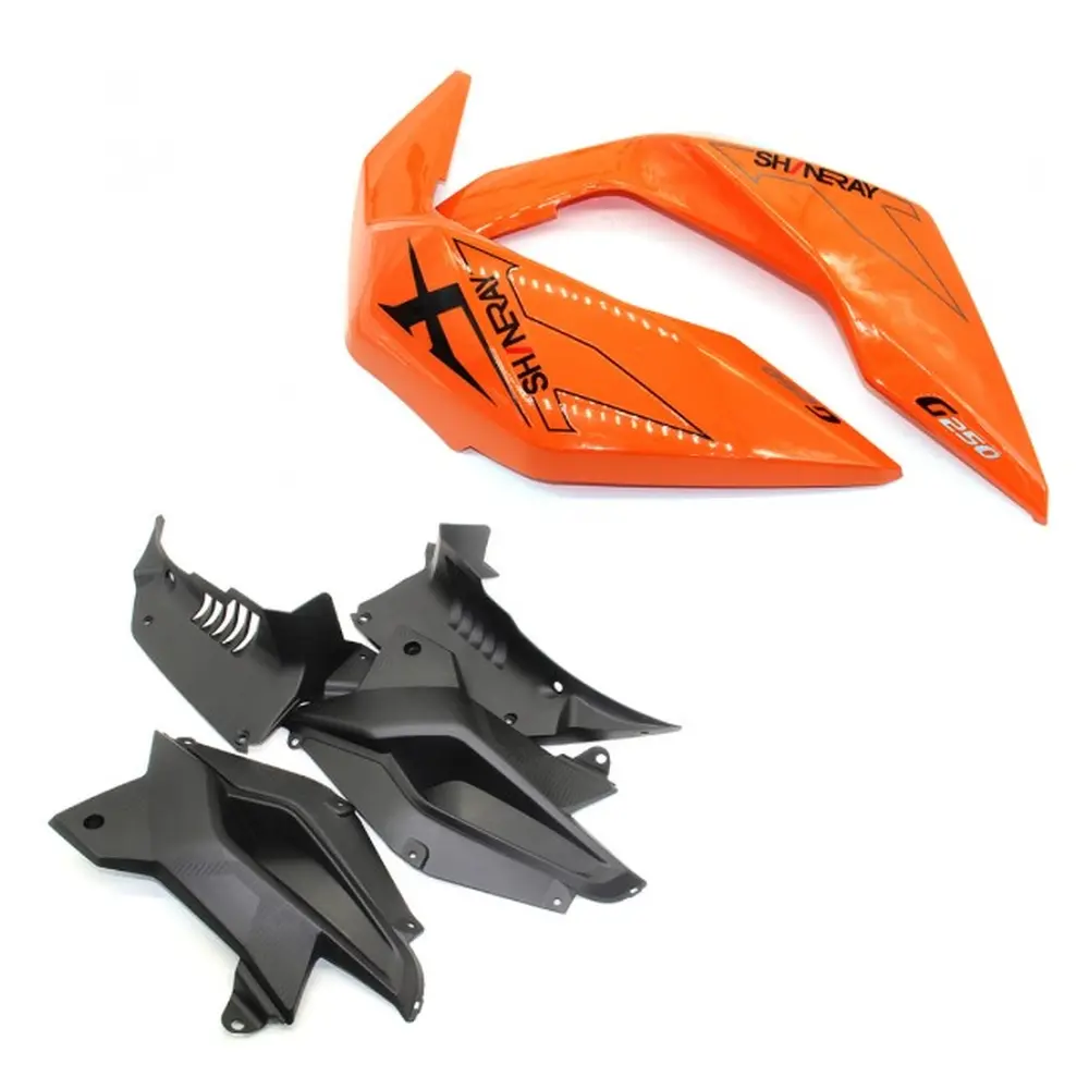 - Ідеальна сумісність: Пластик розроблений та виготовлений з максимальною точністю для мотоциклів Shineray XY200GY-9A та Shineray XY250GY-9A саме нового зразка. Це гарантує бездоганну інтеграцію з існуючими елементами рами, паливного бака та іншими частинами облицювання, виключаючи будь-які щілини або невідповідності.