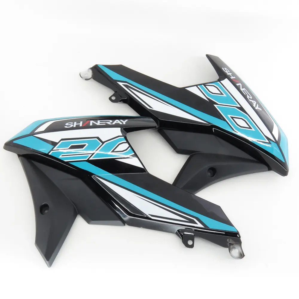 Цей комплект пластику розроблений як пряма, 100% сумісна заміна оригінальних деталей, що гарантує бездоганне прилягання та функціональність для вашого мотоцикла Shineray XY200GY-6C. Усі кріпильні елементи, отвори та конфігурації точно відповідають заводським стандартам та специфікаціям, що забезпечує швидку, легку та безпроблемну установку. Вам не знадобиться використовувати спеціальні інструменти або вносити будь-які модифікації в конструкцію мотоцикла – процес заміни старого або пошкодженого пластику на новий займе мінімум часу та зусиль. Наявність комплекту, що включає як ліву, так і праву бічні накладки, дозволяє провести повне оновлення обох елементів одночасно, забезпечуючи ідеальний симетричний та естетично привабливий результат. Це не тільки відновлює заводський вигляд вашого мотоцикла, але й підтримує його структурну цілісність та захисні властивості.