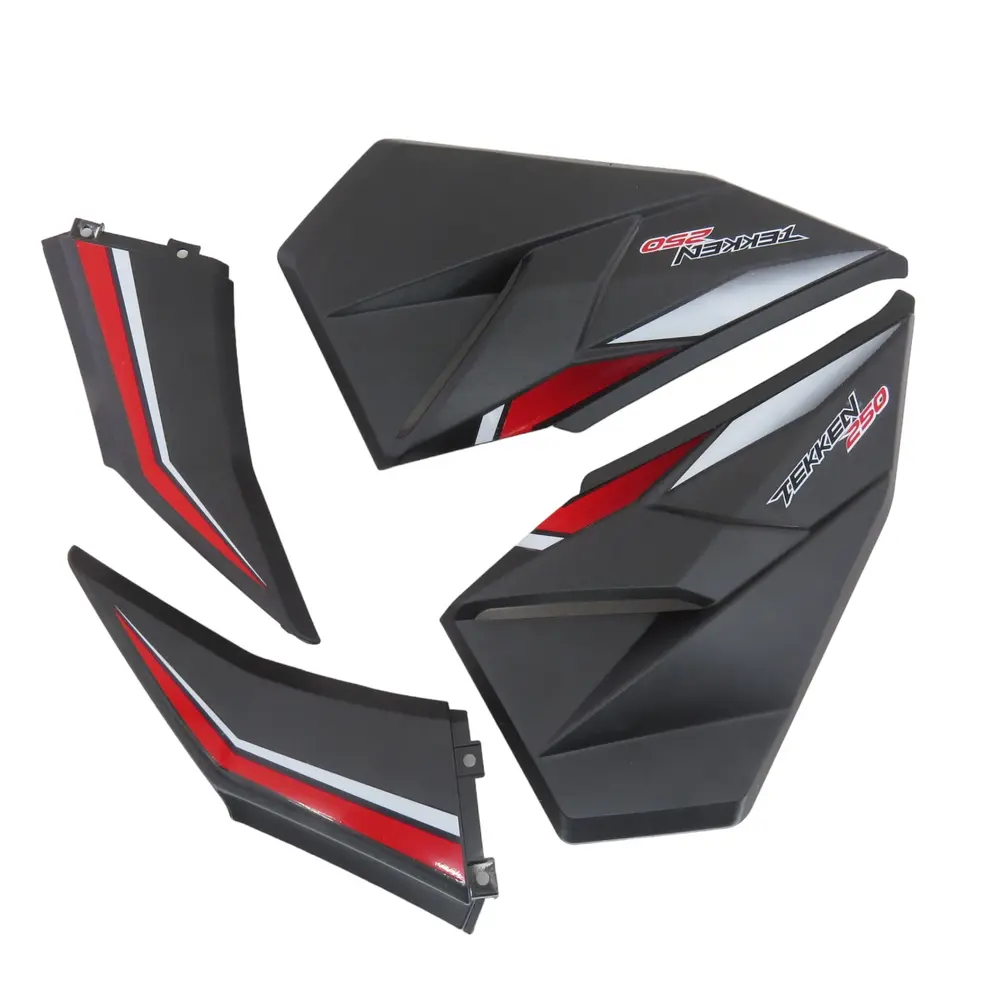 Заміна бічного центрального пластику — це один з найбільш простих та водночас ефективних способів повернути вашому мотоциклу первісний, привабливий вигляд після незначних пошкоджень, потертостей, відколів або втрати блиску з часом. Пластикові елементи мотоцикла з часом можуть покриватися подряпинами, тріщинами або втрачати свій колір під впливом погодних умов та експлуатації, що негативно позначається на загальному естетичному сприйнятті мотоцикла. Встановлення нового комплекту не тільки відновлює його естетику до стану "як з заводу", але й забезпечує надійний та повноцінний захист для важливих внутрішніх вузлів, таких як акумулятор, електропроводка, деякі компоненти паливної системи та елементи рами. Це є важливою інвестицією у довговічність, привабливість та загальний технічний стан вашого TEKKEN 250, дозволяючи йому довше залишатися у відмінній формі.