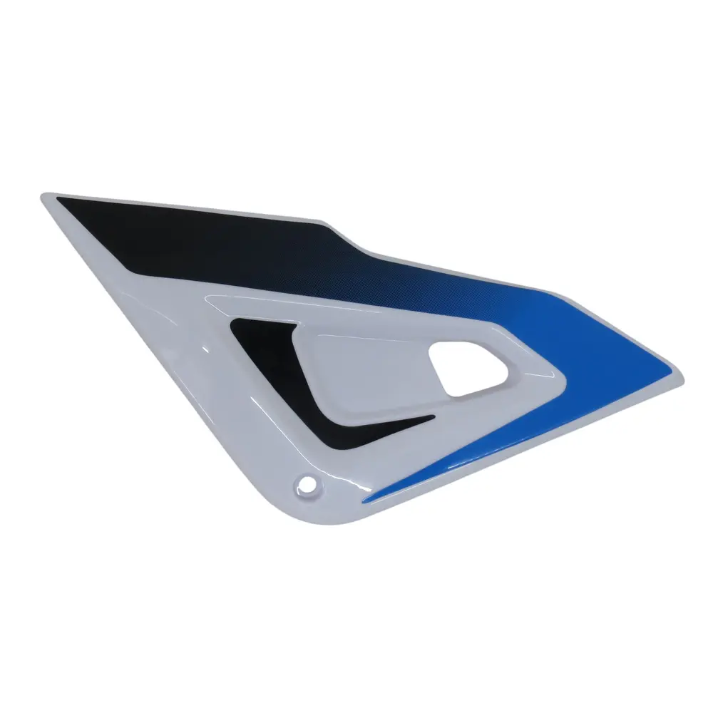 Представлений пластик, виконаний у стильному поєднанні білого та синього кольорів, стане ідеальною заміною пошкодженої або зношеної оригінальної деталі. Він розроблений з урахуванням всіх особливостей зазначених моделей SPARK, гарантуючи ідеальне прилягання та легкість монтажу. Це не просто шматок пластику – це елемент, що допомагає зберегти функціональність і привабливість вашого мотоцикла на довгі роки.