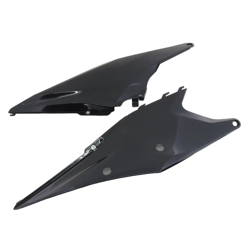 Виготовлений з високоякісного ударостійкого пластику, цей комплект розроблений для тривалого використання в найрізноманітніших умовах експлуатації – від міських вулиць до складного бездоріжжя. Матеріал стійкий до впливу атмосферних факторів, включаючи інтенсивне сонячне випромінювання, різкі перепади температур, вологість та хімічні реагенти, що забезпечує збереження його форми, міцності та насиченого чорного кольору протягом усього терміну служби. Завдяки підвищеній міцності та еластичності, пластик ефективно поглинає удари та мінімізує ризик пошкодження внутрішніх частин мотоцикла у разі легких зіткнень, падінь або контактів з перешкодами. Це не просто заміна старої деталі, а інвестиція у довготривалу красу, функціональність та додатковий захист вашого транспортного засобу, що є критично важливим для активного використання мотоцикла.