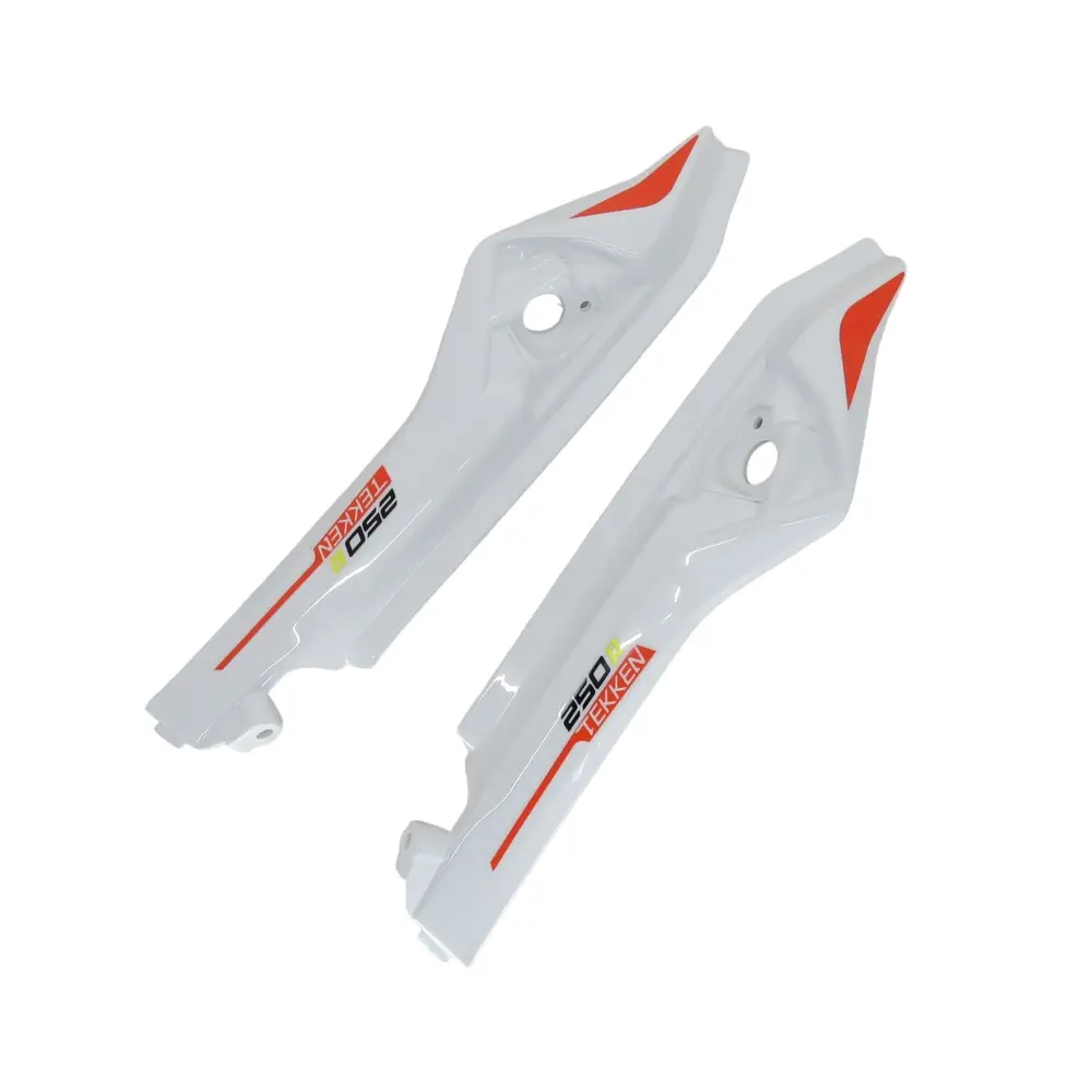 Цей комплект пластику розроблений спеціально для моделі TEKKEN 250, забезпечуючи ідеальне поєднання форми та функції. Біло-помаранчева кольорова гама точно відповідає заводським стандартам або ж дозволяє створити яскравий акцент на вашому мотоциклі. Якісно виконані деталі підкреслюють спортивний характер TEKKEN 250, надаючи йому завершеного та доглянутого вигляду. Окрім естетичної функції, бічний пластик виконує важливу захисну роль, запобігаючи потраплянню бруду, пилу, вологи та дрібного каміння на елементи рами, проводку, повітряний фільтр та інші важливі механізми, розташовані під сидінням та по боках мотоцикла.