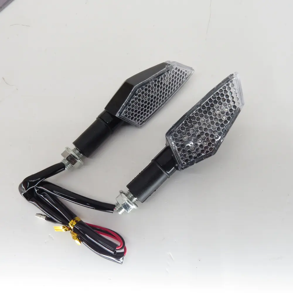 - Багатокутний дизайн: Агресивна багатокутна форма корпусу надає цим поворотникам сучасний та динамічний вигляд. Вони ідеально доповнять естетику будь-якого мотоцикла, який прагне виділитися з натовпу. Чорний матовий корпус додає стриманої елегантності та чудово поєднується з різними кольоровими схемами та стилями мотоциклів, будь то класичний чорний, яскравий спортивний або футуристичний кастом.