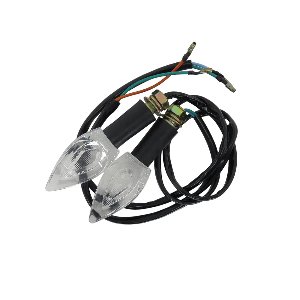 Основна функція поворотних сигналів – забезпечення максимальної видимості на дорозі. Даний комплект забезпечує яскраве і чітке світло, що дозволяє іншим учасникам руху своєчасно реагувати на ваші маневри. Оптимальне розташування та кут розсіювання світла гарантують, що ваш намір повернути або змінити смугу руху буде помічений здалеку, що значно знижує ризик виникнення аварійних ситуацій. Чітка індикація напрямку руху – це основа безпечного керування мотоциклом, і ці поворотні сигнали повністю відповідають цій вимозі, забезпечуючи надійну ідентифікацію ваших дій вдень і вночі. Використання стандартного кольору світіння (як правило, помаранчевого) забезпечує універсальне розуміння сигналів іншими водіями, а висока інтенсивність світла залишає помітний слід навіть в умовах яскравого сонячного світла або поганої видимості через туман чи дощ.