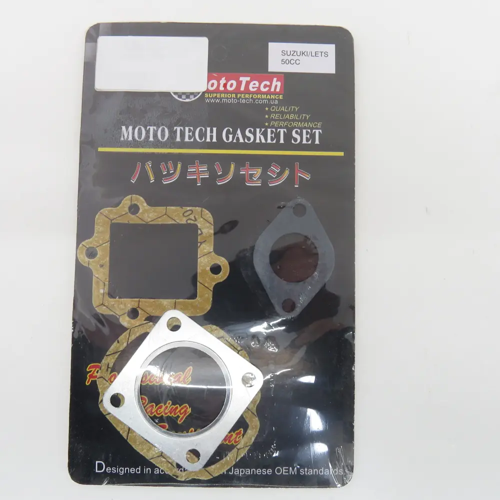 Цей набір прокладок спеціально розроблений для скутерів Suzuki LETS, Suzuki LETS-2 та Suzuki LETS NEW з об'ємом двигуна 49.9 кубічних сантиметрів. Точна відповідність розмірам та конфігурації оригінальних деталей гарантує повну сумісність та легку інтеграцію в систему вашого двигуна. Важливо переконатися, що модель вашого скутера відповідає заявленим характеристикам, щоб забезпечити ідеальне встановлення та максимальну ефективність використання набору. Використання прокладок, не призначених для вашої моделі двигуна, може призвести до неправильної герметизації, витоків, зниження продуктивності та, як наслідок, до серйозних поломок. Набір M-T SUPERIOR для Suzuki LETS 49.9cc – це ваш вибір для відновлення заводських параметрів герметичності та надійності.