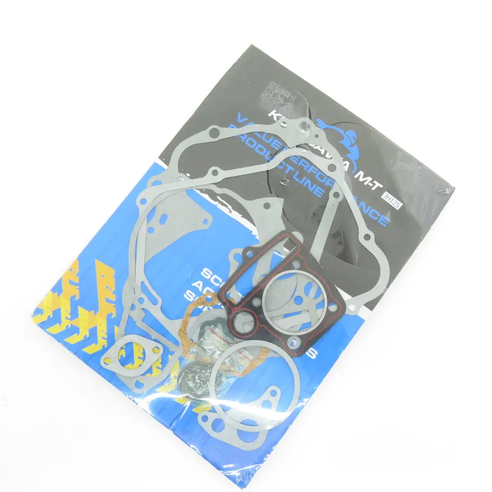 Позначка «великий» у назві цього набору прокладок KUROSAWA M-T JH-125 DELTA/ALPHA свідчить про його вичерпну комплектацію. Це не просто кілька прокладок для окремої частини двигуна, а повний комплект, що включає всі необхідні елементи для капітального або часткового ремонту силового агрегату. Такий набір дозволяє майстру або власнику мотоцикла провести заміну прокладок у всіх критичних місцях, забезпечуючи максимальну герметизацію після втручання. Зазвичай до такого великого набору входять прокладки головки циліндра, основи циліндра, картера двигуна (правої та лівої половини), кришки зчеплення, кришки генератора (магнето), прокладки клапанних кришок, вихлопної системи, а також численні ущільнювальні кільця та сальники, необхідні для повної герметизації системи. Це значно спрощує процес ремонту, оскільки вам не потрібно шукати кожну прокладку окремо, заощаджуючи ваш час та кошти, а також гарантуючи, що жодна важлива деталь не буде пропущена.