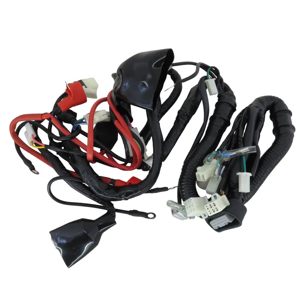 - Повна комплектація: Включає в себе всі необхідні електричні гілки та роз'єми для підключення системи запалювання, освітлення (передні фари, задні ліхтарі, поворотники), гальмівних ліхтарів, звукового сигналу, датчиків, акумулятора, стартера, генератора та приладової панелі.