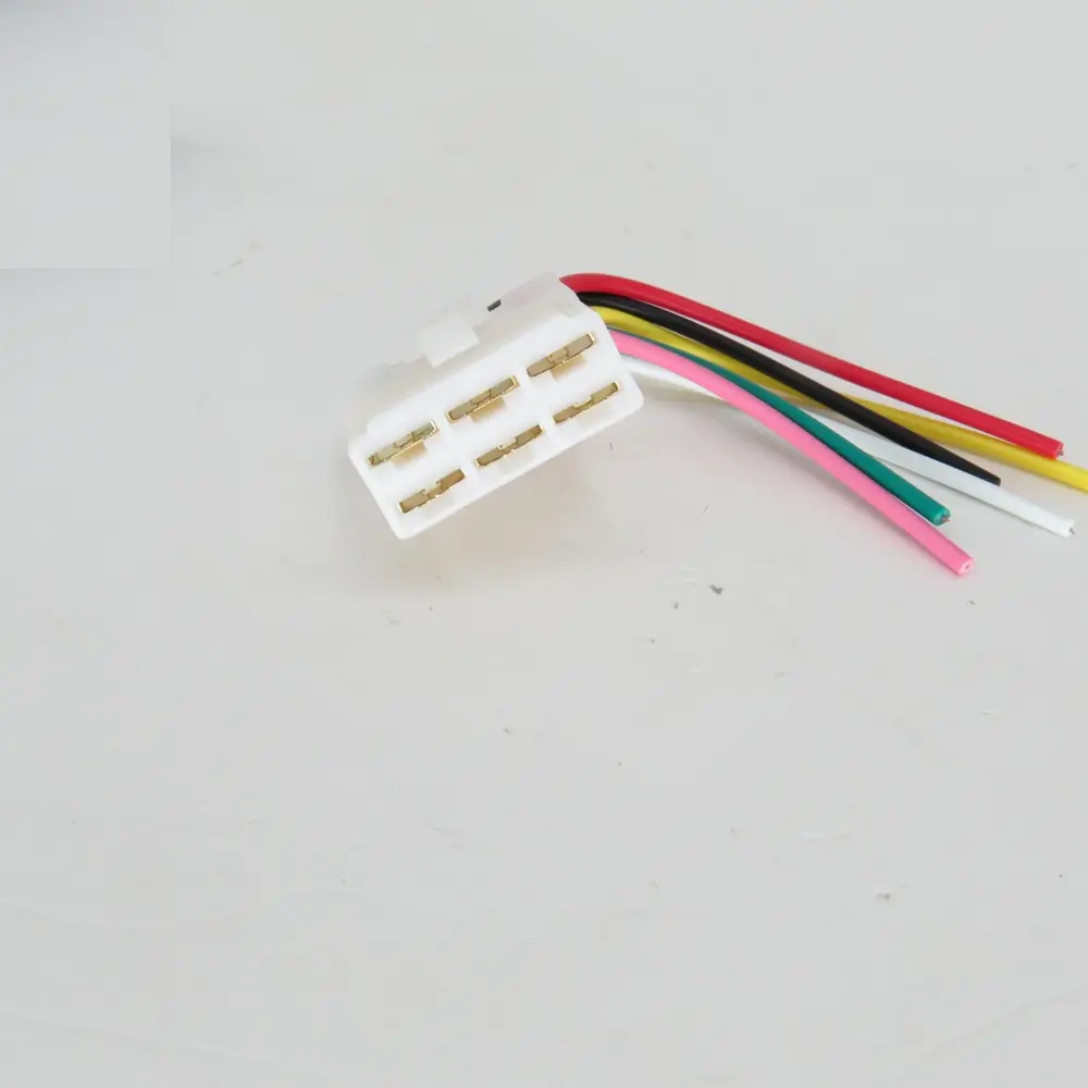 - 6 контактів: Наявність шести контактів робить цей роз’єм надзвичайно універсальним рішенням для складних електричних схем. Він ідеально підходить для підключення систем, що вимагають передачі декількох сигналів або забезпечення живлення кількох компонентів одночасно. Це можуть бути багатофункціональні системи освітлення з різними режимами роботи (наприклад, габарити, ближнє, дальнє світло з додатковими функціями), датчики з кількома вихідними параметрами (температура, тиск, оберти), блоки керування двигуном або додаткове обладнання, що вимагає розширених функціональних можливостей. Такий роз’єм дозволяє мінімізувати кількість з’єднань, спрощуючи загальну архітектуру електропроводки, зменшуючи потенційні точки відмов та значно підвищуючи її надійність. Це особливо важливо для мотоциклів, де простір для прокладання кабелів обмежений, а кожне з’єднання має бути максимально ефективним.