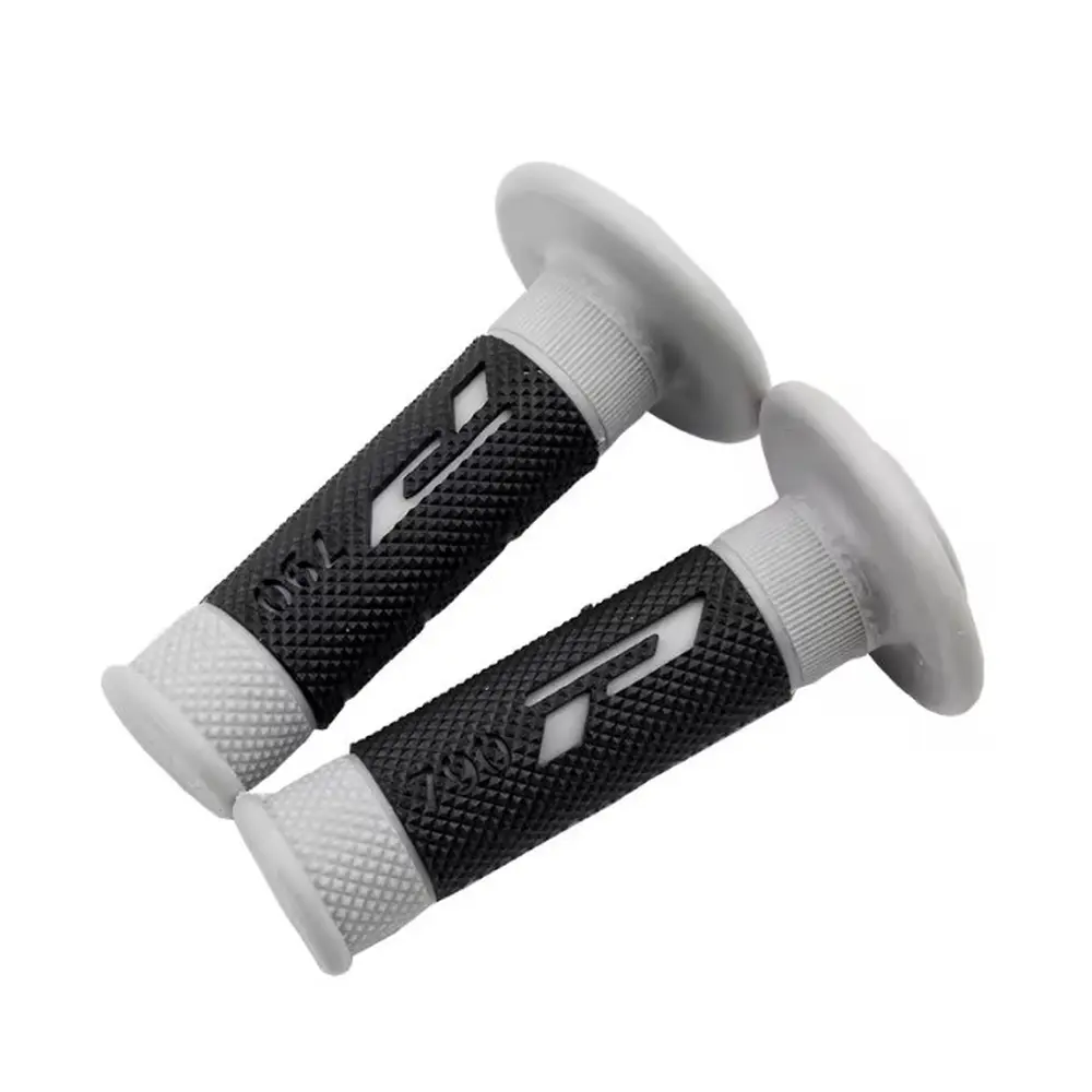 - Двокомпонентний матеріал: Гріпси виготовлені з двох різних типів гуми. Внутрішній, більш жорсткий компонент, забезпечує надійне кріплення до керма, запобігаючи прокручуванню. Зовнішній, м'який матеріал, забезпечує комфортний хват, ефективно поглинає вібрації та гарантує відмінне зчеплення з долонею, навіть якщо руки мокрі або в рукавичках. Це дозволяє зберігати повний контроль над мотоциклом у будь-якій ситуації.