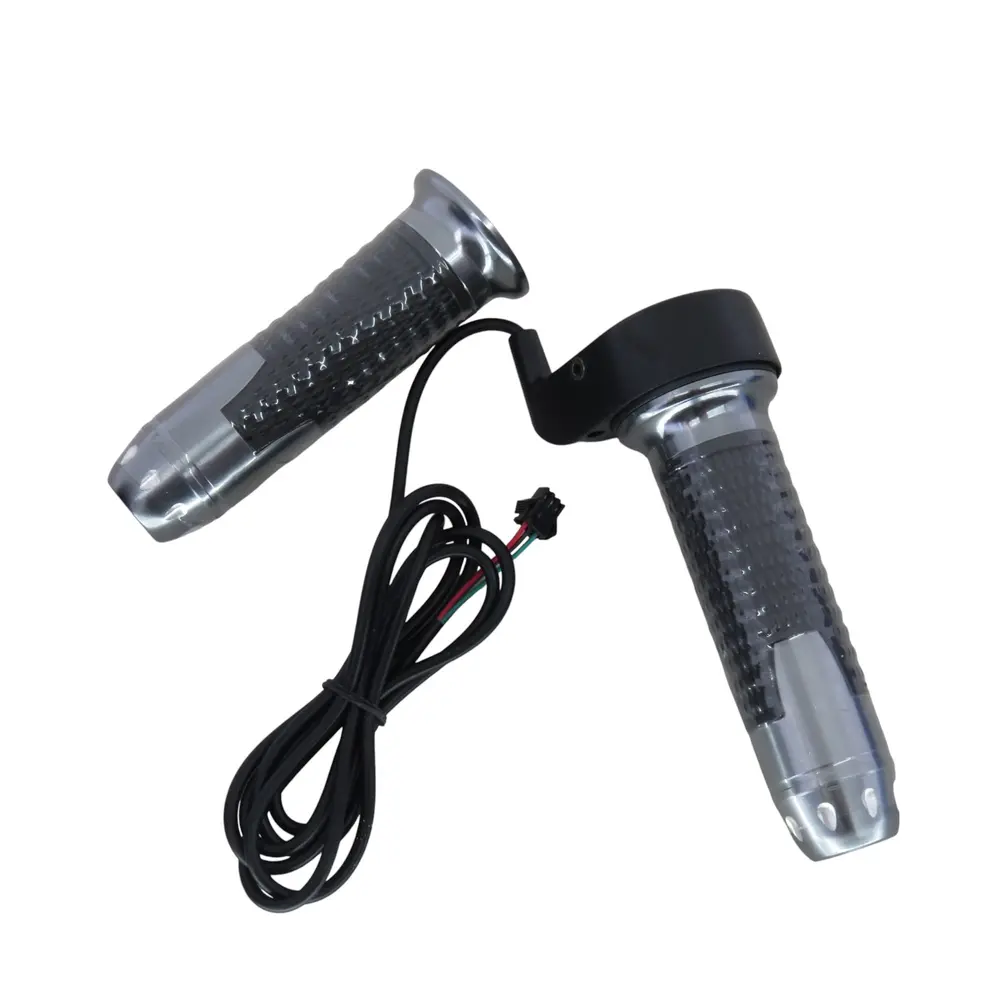 Відчуйте повний контроль та комфорт над своїм електровелосипедом з універсальними ручками руля від Motomarket, що включають інтегроване управління газом. Цей комплект «ліва + права» розроблений для забезпечення оптимальної ергономіки та безперебійної роботи, перетворюючи кожну поїздку на справжнє задоволення. Незалежно від того, чи ви шукаєте заміну зношеним компонентам, чи бажаєте покращити функціональність свого двоколісного друга, ці ручки стануть ідеальним вибором, гармонійно поєднуючи в собі надійність, довговічність та зручність використання. Вони є ключовим елементом, що з'єднує водія з потужністю електродвигуна, забезпечуючи плавне та інтуїтивно зрозуміле регулювання швидкості.
