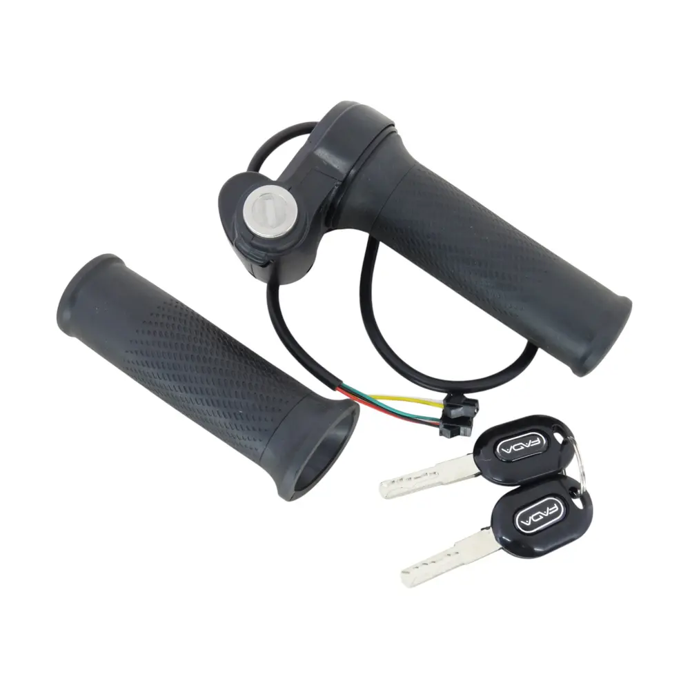 Даний комплект ручок керма розроблений спеціально для мотоциклів та скутерів Fada, зокрема моделі SiMPA, забезпечуючи ідеальну сумісність та легкість установки. Права ручка оснащена механізмом газу, що гарантує плавне та точне регулювання обертів двигуна, що є критично важливим для комфортної та безпечної їзди. Ліва ручка забезпечує надійний хват та слугує опорою, доповнюючи загальну ергономіку керування. Виготовлені з високоякісних матеріалів, ці ручки здатні витримувати значні навантаження, вплив атмосферних явищ та інтенсивне використання, що робить їх відмінним вибором як для повсякденних поїздок, так і для тривалих подорожей.