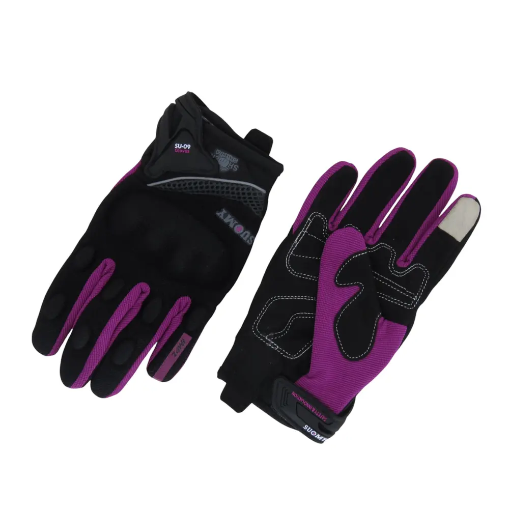 Колірна гама – класичний чорний з елегантними фіолетовими вставками – надає рукавицям SUOMY SU09 вишуканого та агресивного вигляду. Цей дизайн не тільки привертає увагу, але й легко поєднується з різними видами мотоекіпіровки, дозволяючи вам створити цілісний та стильний образ. Яскраві акценти не лише додають візуального динамізму, але й можуть підвищити помітність на дорозі, що є додатковим плюсом для пасивної безпеки райдера.