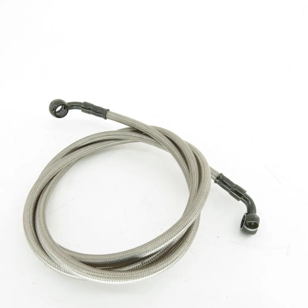 Передній гальмівний шланг є ключовим елементом, що забезпечує прямий зв'язок між рукояткою гальма та гальмівним супортом. Його надійність безпосередньо впливає на швидкість реакції та ефективність гальмування. Зношений або пошкоджений шланг може призвести до небажаного розширення під тиском, що проявляється у "ватному" відчутті гальмівної ручки, погіршенні гальмівної динаміки та, у найгіршому випадку, до відмови гальм. Цей шланг гідравліки V200R 1340 мм виготовлений з використанням передових технологій та матеріалів, що мінімізує будь-яке розширення навіть під екстремальними навантаженнями. Це дозволяє забезпечити миттєвий та точний відгук гальмівної системи, надаючи водієві максимальний контроль над мотоциклом у критичних ситуаціях. З цим шлангом ви можете бути впевнені у кожному гальмівному маневрі, знаючи, що ваша гальмівна система працює бездоганно.