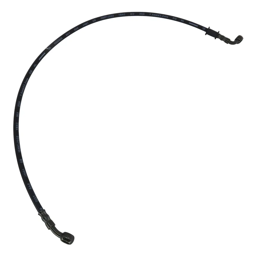 - Надійність конструкції: Конструкція шланга розрахована на витримування значних гідравлічних навантажень та вібрацій. Посилені кінцеві фітинги забезпечують герметичне та міцне з'єднання з гальмівною машинкою та супортом, запобігаючи витоку гальмівної рідини та проникненню повітря в систему. Металеві елементи фітингів оброблені для захисту від корозії, що подовжує термін їхньої служби.
