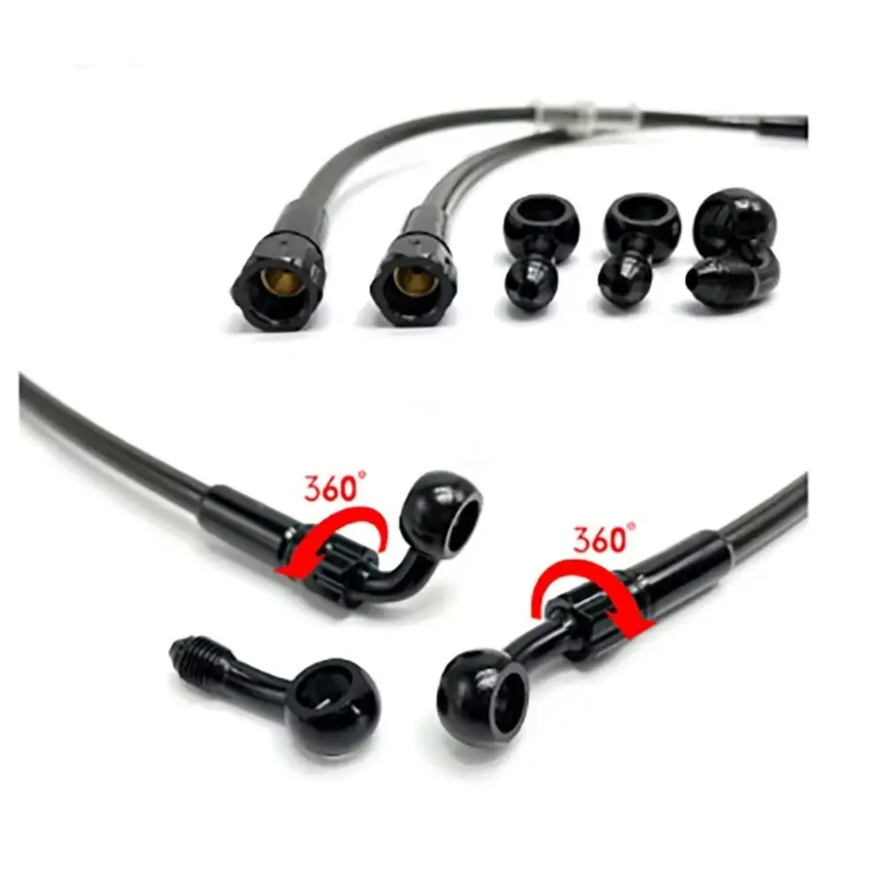 - Кастомізація та адаптація: Розбірні фітинги дозволяють легко змінити кут або тип підключення, адаптуючи шланг під специфічні потреби вашого мотоцикла або після встановлення нештатних компонентів гальмівної системи. Це ідеальне рішення для тюнінгу та персоналізації.