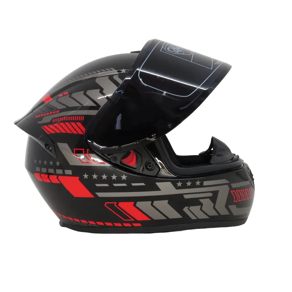 Деякі модифікації шолома можуть бути оснащені інтегрованим сонцезахисним візором, який зручно активується одним рухом, забезпечуючи додатковий комфорт та безпеку при зміні освітлення. Механізм візора працює плавно та надійно, дозволяючи фіксувати його в декількох положеннях для оптимального припливу повітря або повного закриття.