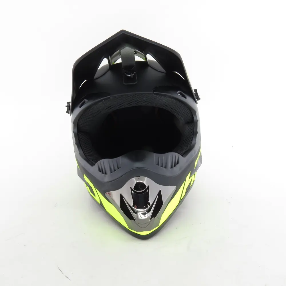 Широкий оглядовий порт шолома ідеально підходить для використання з різноманітними кросовими масками та окулярами, забезпечуючи максимальний периферичний зір. Це дає змогу швидко реагувати на зміни рельєфу та навколишнього середовища, що є ключовим для безпечної та ефективної їзди. Козирок шолома, характерний для кросових моделей, не тільки додає агресивності дизайну, але й ефективно захищає очі від сонця, бруду та дощу, покращуючи видимість у будь-яких умовах.