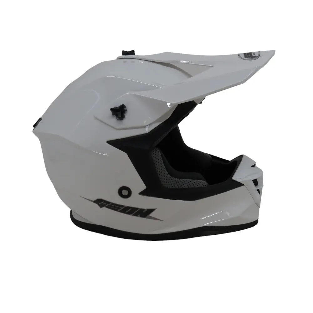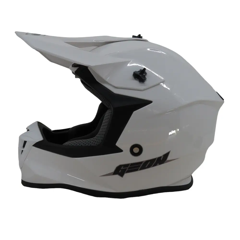 Шолом GEON 633 MX Крос вражає своїм агресивним та динамічним дизайном, виконаним у глянцевому білому кольорі (GLOSS/WHITE), що не тільки надає йому елегантного вигляду, але й робить вас помітним на трасі. Його аеродинамічна форма розроблена для мінімізації опору вітру та зниження навантаження на шию, що особливо важливо під час тривалих поїздок та інтенсивних тренувань. Візуально шолом виглядає легким та стрімким, і це не лише дизайнерське рішення, а й практична перевага, що сприяє кращій керованості та зниженню втоми пілота. Глянцеве покриття не тільки привабливо виглядає, але й полегшує догляд за шоломом, дозволяючи легко очищати його від бруду та пилу після чергового заїзду.