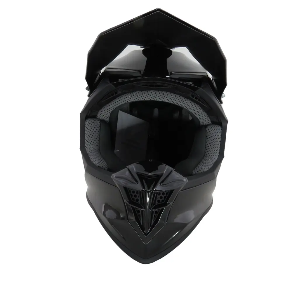 Зовнішній вигляд шолома GEON 633 MX Крос GLOSS/BLACK вражає своєю агресивністю та динамічністю. Глянцеве чорне покриття (GLOSS/BLACK) надає шолому елегантний, але водночас спортивний вигляд, який ідеально поєднується з будь-якою екіпіровкою. Сучасний дизайн з чіткими лініями та виразними елементами підкреслює характер свого власника та приваблює погляди на трасі. Цей шолом не просто захисний елемент, а й важлива частина вашого спортивного образу, що демонструє серйозність ваших намірів щодо бездоріжжя.