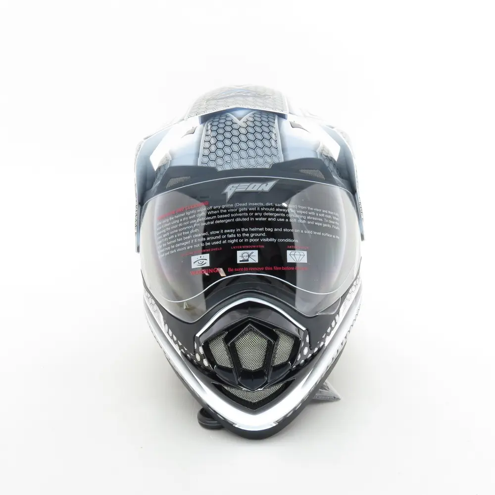 Відкрийте для себе світ безмежних можливостей з шоломом Geon 714 Дуал-спорт Trek White/Black – ідеальним вибором для мотоциклістів, які цінують універсальність, комфорт та надійний захист як на асфальтованих трасах, так і на складних позашляхових маршрутах. Розроблений з урахуванням потреб сучасних мандрівників, цей шолом поєднує в собі агресивний дизайн, високу функціональність та безкомпромісну безпеку. Завдяки своєму інноваційному підходу до ергономіки та безпеки, Geon 714 стає невід’ємною частиною екіпірування для кожного, хто прагне досліджувати нові горизонти на двох колесах.