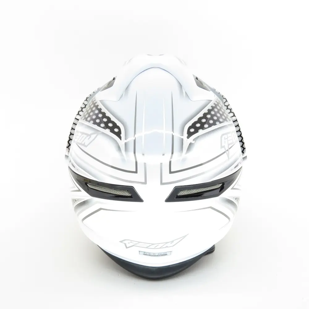 Дизайн Geon 714 Дуал-спорт Trek White/Black вражає своєю динамічністю та сучасністю. Контрастне поєднання білого та чорного кольорів надає шолому агресивного та елегантного вигляду одночасно, підкреслюючи вашу індивідуальність та готовність до будь-яких викликів, які можуть постати на вашому шляху. Чіткі лінії, виразні вентиляційні отвори та загальна агресивна форма гармонійно поєднуються, створюючи образ справжнього мандрівника. Цей шолом не лише забезпечує найвищий рівень захисту, але й стає яскравим, виразним елементом вашого мотоекіпірування, що гармонійно доповнить будь-який мотоцикл – від ендуро до дорожнього турера.