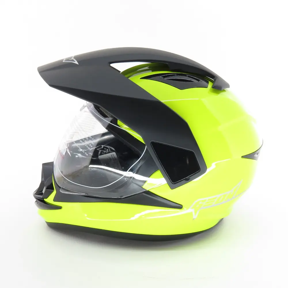 Шолом Geon 714 Дуал-спорт Trek Yellow – це ідеальний вибір для мотоциклістів, які не бажають обмежувати себе одним типом доріг. Створений для пригод як на асфальтованих трасах, так і на бездоріжжі, цей шолом поєднує в собі найкращі якості дорожнього та ендуро шоломів. Його динамічний дизайн у яскравому кольорі Trek Yellow не тільки привертає увагу, але й підвищує вашу видимість на дорозі, забезпечуючи додаткову безпеку. Розмір XS (53-54 см) гарантує ідеальну посадку для мотоциклістів з відповідним обхватом голови, забезпечуючи максимальний комфорт під час довгих поїздок. Geon 714 – це синонім свободи, захисту та стилю для справжніх шукачів пригод, які прагнуть досліджувати нові горизонти.