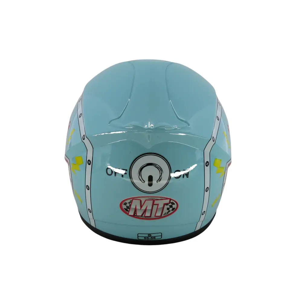 Окрім безкомпромісної безпеки та комфорту, шолом HF-909 E28 вирізняється яскравим та привабливим дизайном. Соковитий блакитний колір неодмінно сподобається дітям, додаючи їм впевненості та стилю. Аеродинамічна форма шолома не тільки надає йому сучасного вигляду, але й сприяє зменшенню шуму вітру під час руху, роблячи поїздки комфортнішими. Логотип MotoTech підтверджує належність до бренду, відомого своєю якістю та увагою до деталей.