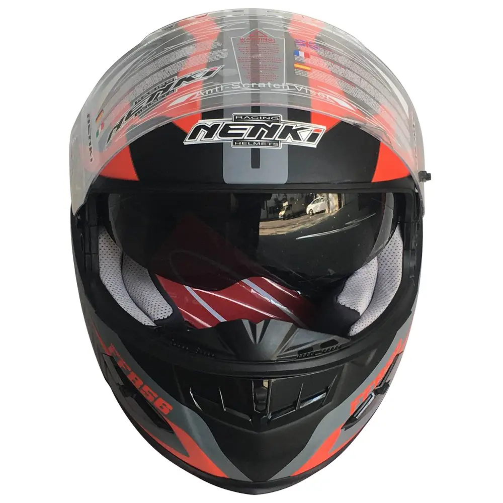 Чітке бачення дороги є запорукою безпечної поїздки, і шолом Nenki FF-856 це забезпечує. Прозорий візор виготовлений з високоякісного полікарбонату, стійкого до подряпин, і має покриття, що захищає від ультрафіолетових променів. Це гарантує відмінну видимість у будь-яких умовах освітлення, без спотворень. Система швидкої заміни візора дозволяє легко міняти його без використання інструментів, що зручно для адаптації до різних погодних умов або для заміни на тонований візор. Деякі модифікації цього шолома також можуть мати вбудований сонцезахисний візор, який забезпечує додатковий комфорт та захист від сліпучого сонця, підвищуючи безпеку та зручність. Механізм візора працює плавно, дозволяючи фіксувати його в різних положеннях для оптимальної вентиляції чи повного закриття.