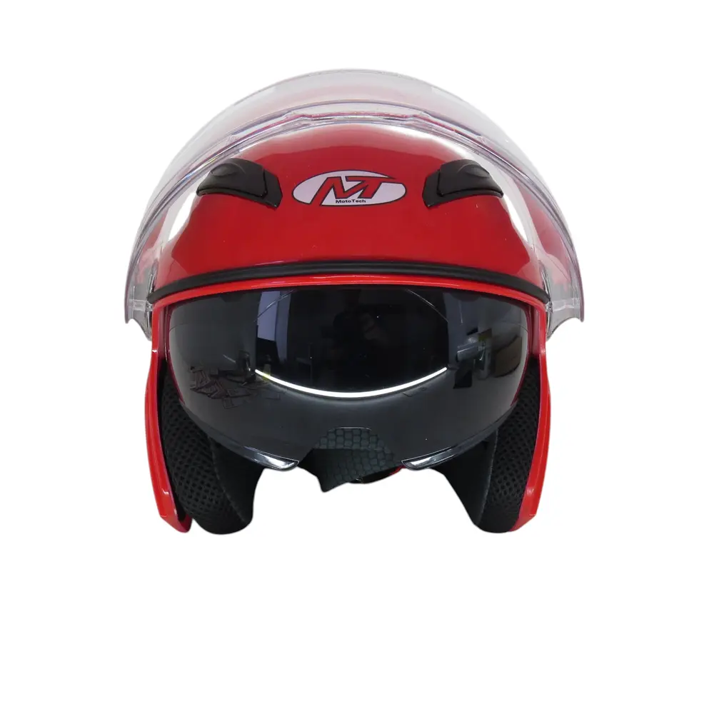 Шолом MT 606 у червоному кольорі з білим склом та вбудованими окулярами – це чудове рішення для райдерів, які шукають універсальний, стильний та функціональний шолом для щоденних поїздок містом, рекреаційних круїзів та подорожей на середні дистанції. Його легкість, широкий огляд та неперевершена зручність подвійного візора роблять його незамінним супутником як у міських джунглях, так і на відкритих трасах.