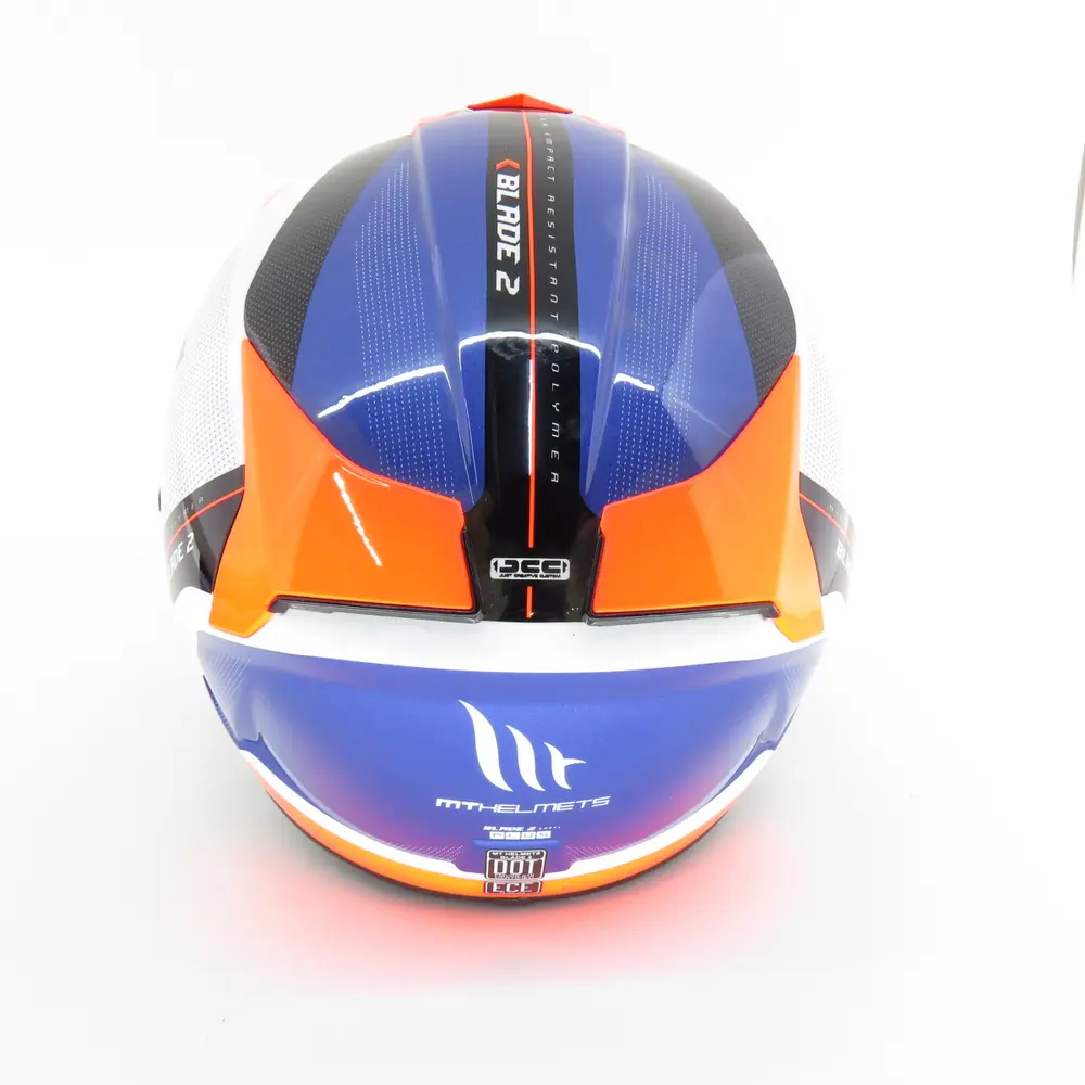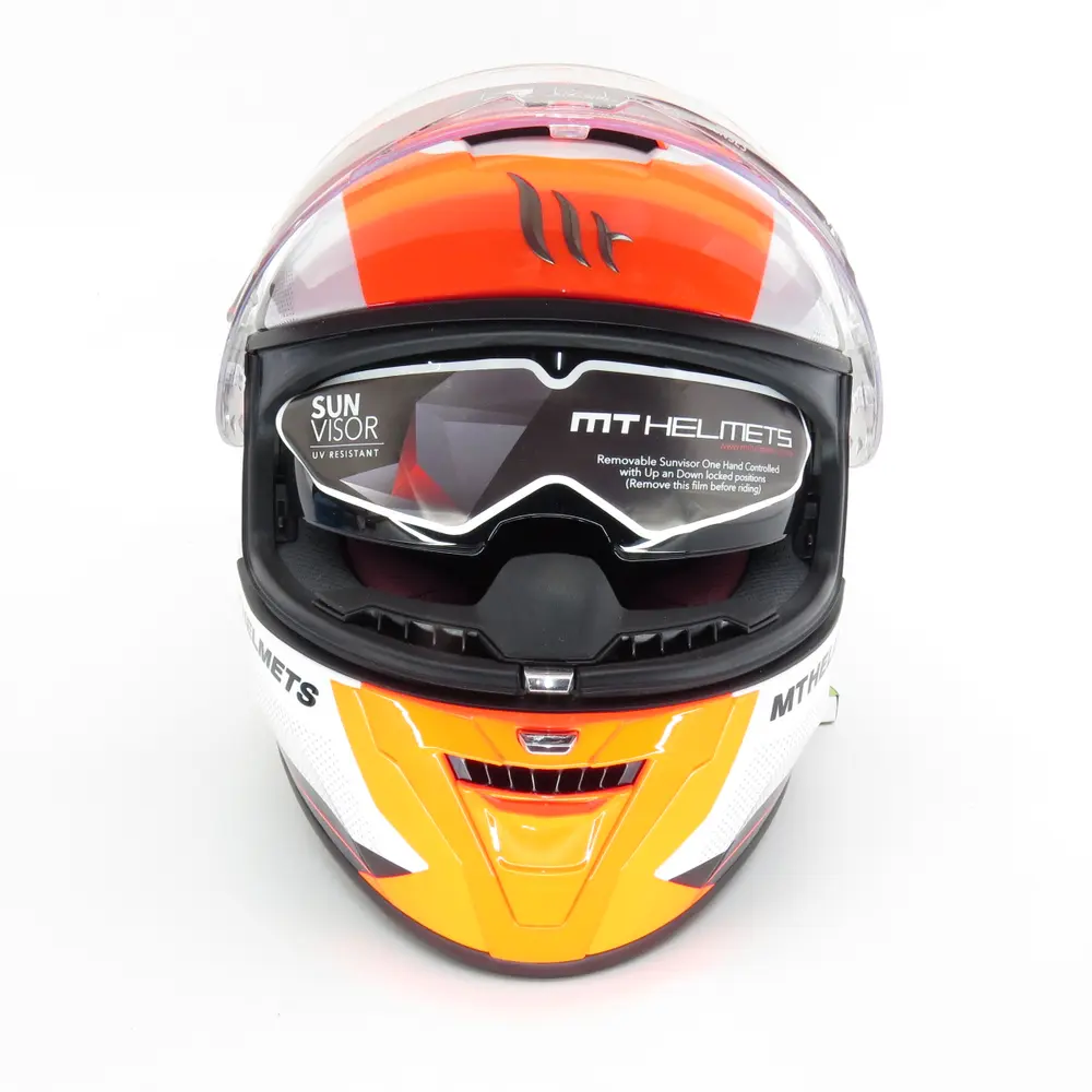 Модель MT Blade 2 SV Plus привертає увагу своїм динамічним та агресивним дизайном, який підкреслює спортивний характер райдера. Енергійна колірна комбінація білого, оранжевого, синього та чорного створює яскравий та незабутній образ, що виділяє вас з натовпу. Цей шолом не лише функціональний елемент екіпіровки, а й виразний аксесуар, що доповнює ваш мотоциклетний стиль. Кожна лінія та колірний перехід ретельно продумані, щоб створити гармонійний та сучасний вигляд. Шолом MT Blade 2 SV Plus — це вибір тих, хто цінує не лише продуктивність, а й естетику.
