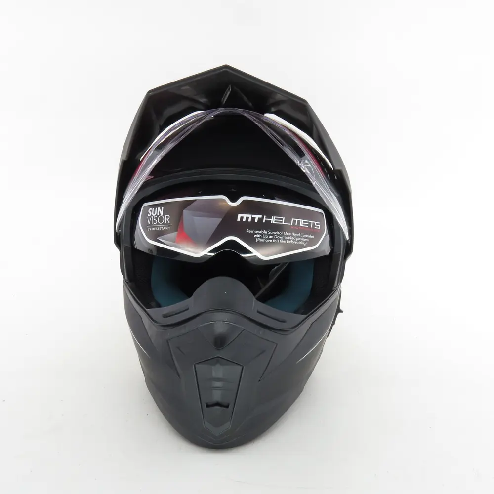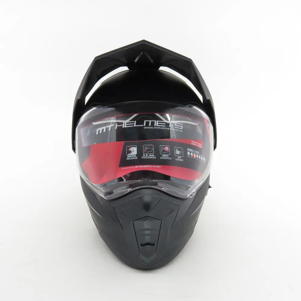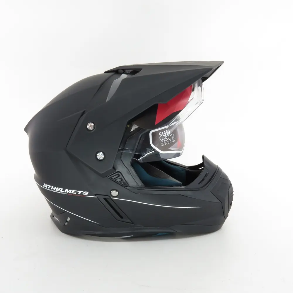 Однією з ключових переваг моделі MT Synchrony SV Duo Sport є наявність інтегрованого сонцезахисного візора (SV), що забезпечує неперевершений комфорт та безпеку в умовах мінливого освітлення. Цей висувний візор легко активується одним рухом руки, дозволяючи миттєво адаптуватися до яскравого сонця, тунелів або сутінок. Основний прозорий візор виготовлений з високоякісного полікарбонату, стійкого до подряпин та ультрафіолетового випромінювання. Він забезпечує широке поле зору без спотворень, що є критично важливим для безпечного водіння. Крім того, візор підготовлений до встановлення лінзи Pinlock (опціонально), яка ефективно запобігає запотіванню в холодну або вологу погоду, гарантуючи ідеальну видимість у будь-яких умовах. Механізм швидкої заміни візора дозволяє легко знімати його без використання інструментів для очищення або заміни.