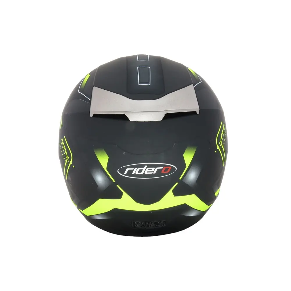 Шолом Ridero не лише захищає, а й підкреслює ваш унікальний стиль. Елегантна матова або глянцева чорна основа шолома чудово поєднується з яскравими, енергійними лаймовими акцентами. Це сміливе колірне рішення не лише додає шолому сучасності та динамічності, але й робить вас більш помітним на дорозі, підвищуючи пасивну безпеку завдяки кращій візуалізації для інших учасників руху. Лаймові елементи можуть бути розташовані на вентиляційних отворах, графічних смугах, або елементах дизайну, створюючи привабливий контраст та виділяючи вас з натовпу.