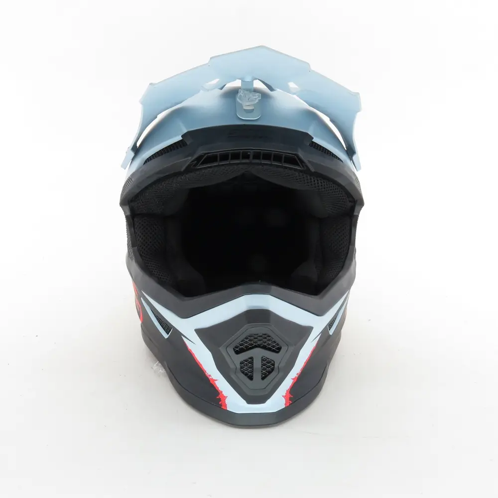 Регульований козирок не тільки додає стилю, але й виконує важливі захисні функції. Він ефективно захищає від сонця, бруду, летячих каменів та гілок, забезпечуючи оптимальний огляд та комфорт у різних умовах. Широкий оглядовий порт дозволяє легко використовувати різні моделі захисних окулярів, забезпечуючи максимальний периферичний зір та повний контроль над ситуацією на трасі. Дизайн шолома виконаний у традиціях професійних мотокросових шоломів, що дозволяє юним райдерам почувати себе справжніми професіоналами.