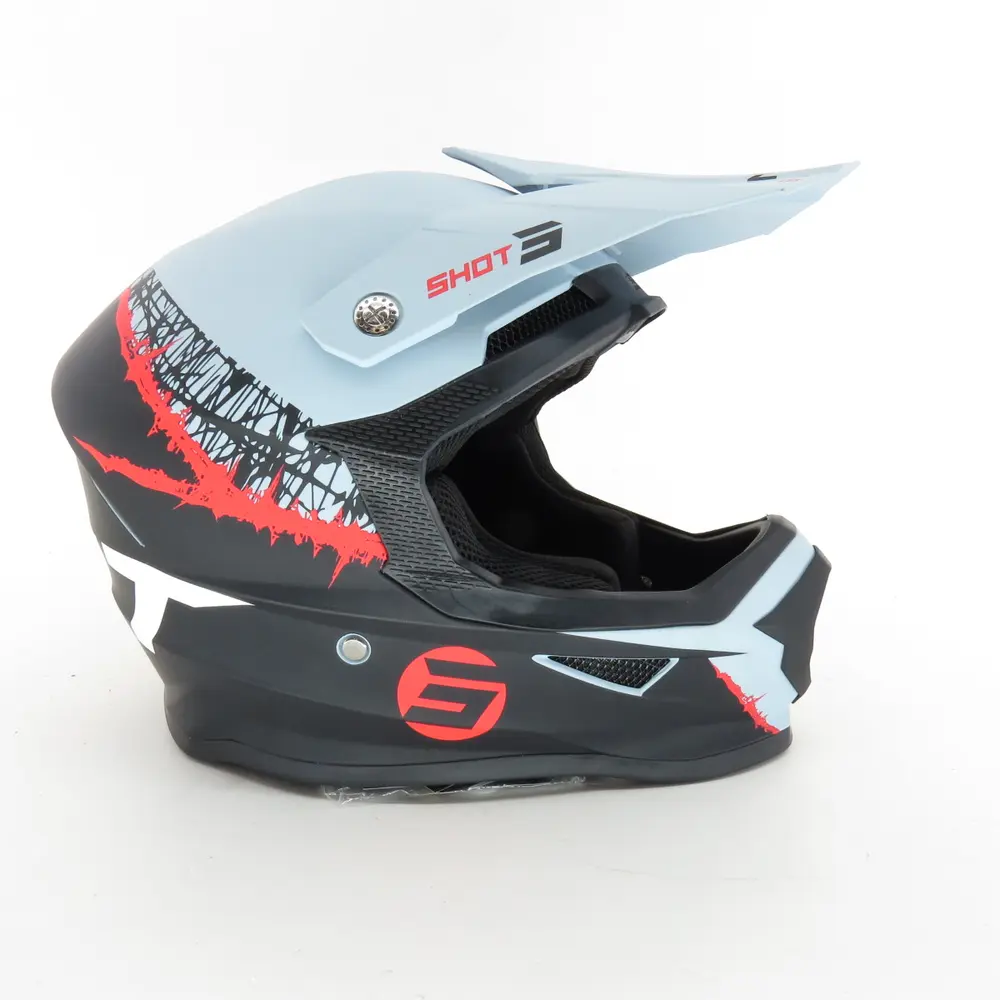 Шолом Shot Racing Furious Storm Black/Grey/Red (Kid) YXL не лише безпечний, але й надзвичайно стильний. Його агресивний, динамічний дизайн у поєднанні з яскравими кольорами – чорним, сірим та червоним – привертає увагу та підкреслює енергію юного гонщика. Ці кольори не тільки виглядають ефектно, але й підвищують помітність райдера на трасі. Високоякісна графіка нанесена з великою увагою до деталей, стійка до вигорання від сонячного проміння та подряпин, зберігаючи привабливий вигляд шолома надовго навіть при інтенсивному використанні.