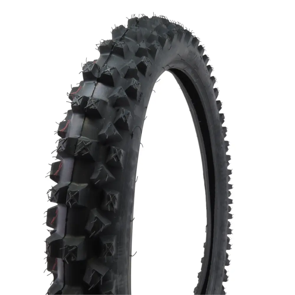 З розміром 80/100-21, ця шина забезпечує оптимальний баланс між шириною та висотою профілю. Ширина 80 мм гарантує відмінну контактну пляму, покращуючи стабільність та контроль мотоцикла навіть на високих швидкостях та при проходженні крутих поворотів. Високий профіль 100% (відносно ширини) забезпечує ефективну амортизацію нерівностей, що є критично важливим для комфорту та керованості на бездоріжжі, дозволяючи колесу краще "облизувати" перешкоди. Діаметр R21 свідчить про використання шини на передніх колесах більшості сучасних ендуро та кросових мотоциклів, що є стандартом для подолання значних перешкод та збереження курсової стійкості. Ці параметри дозволяють водієві почуватися впевнено на будь-якій трасі, від кам'янистих стежок до лісових доріг.