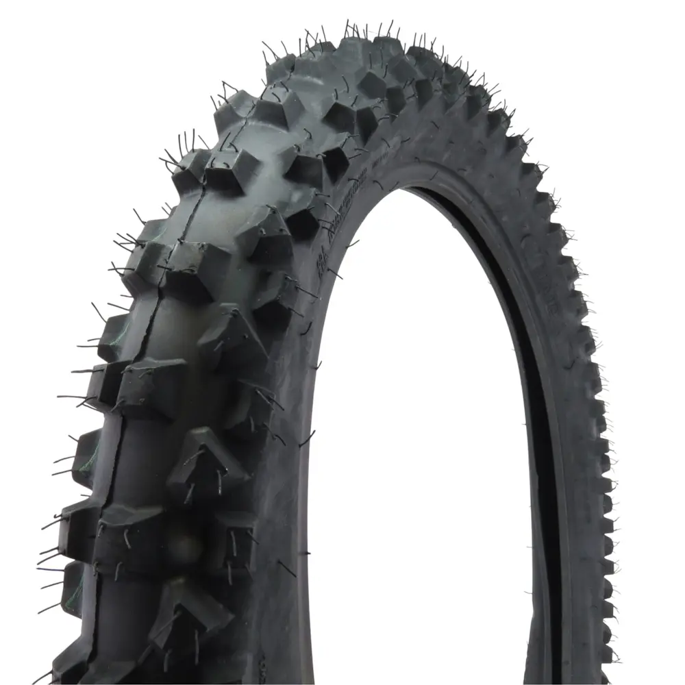 Модель протектора XY-057 розроблена з урахуванням найвищих вимог до зчеплення та ефективності на бездоріжжі. Вона має агресивний, відкрито розташований малюнок з великими, добре розділеними блоками, які гарантують відмінне зчеплення на пухких ґрунтах, піску, глині та бруді. Оптимальне розташування та форма блоків сприяють ефективному самоочищенню протектора від бруду та каменів, підтримуючи постійний рівень зчеплення протягом усієї поїздки, що є критично важливим для стабільності та керованості. Багатогранні блоки протектора також забезпечують високу ефективність гальмування та точність маневрування на складних ділянках, дозволяючи райдеру впевнено контролювати мотоцикл у будь-якій ситуації. Важливим аспектом, що відрізняє цю шину, є гумовий компаунд "medium". Ця середня твердість гуми забезпечує ідеальний баланс між зчепленням та зносостійкістю. Вона гарантує надійний контакт з широким діапазоном поверхонь – від твердого ґрунту та каміння до помірно м'якого бруду, при цьому забезпечуючи значний термін служби шини. Це робить шину Haida XY-057 надзвичайно універсальною, дозволяючи райдеру впевнено почуватися як на швидкісних ділянках, так і на технічно складних трасах, незалежно від мінливих умов рельєфу та погоди. Такий компаунд є оптимальним вибором для тих, хто шукає універсальне рішення без компромісів.