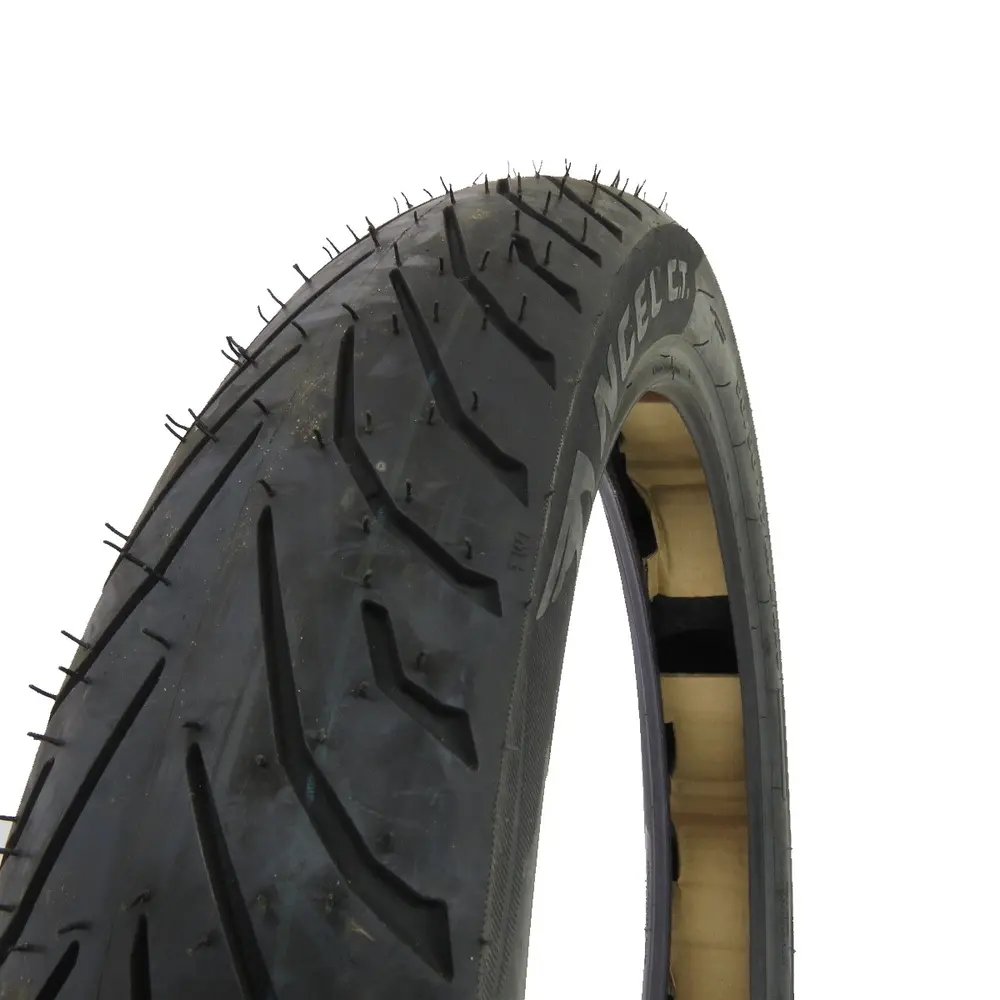 Розмір 90/90-17 вказує на ключові характеристики шини, які важливі для її сумісності та експлуатаційних властивостей. Перше число, 90, означає ширину протектора в міліметрах. Друге число, також 90, вказує на співвідношення висоти профілю до ширини в процентах (90% від 90 мм). Третє число, 17, позначає діаметр диска в дюймах. Ця комбінація розмірів є типовою для широкого спектра легких та середніх мотоциклів, включаючи міські байки, деякі моделі ендуро або мотардів, які використовуються для щоденних поїздок, а також для невеликих туристичних мотоциклів. Шина такого розміру забезпечує відмінну маневреність, швидку реакцію на рухи керма та стабільність при проходженні поворотів, що робить її ідеальним рішенням для динамічного міського руху та комфортних поїздок за містом. Вона сприяє зменшенню неподресорених мас, покращуючи загальну керованість та відчуття дороги. Це універсальний розмір, що підходить як для переднього колеса багатьох моделей, так і для заднього на легших мотоциклах, забезпечуючи гнучкість у виборі та застосуванні. Збалансованість профілю сприяє рівномірному зносу, що продовжує термін служби шини та підтримує її характеристики протягом усього періоду експлуатації.