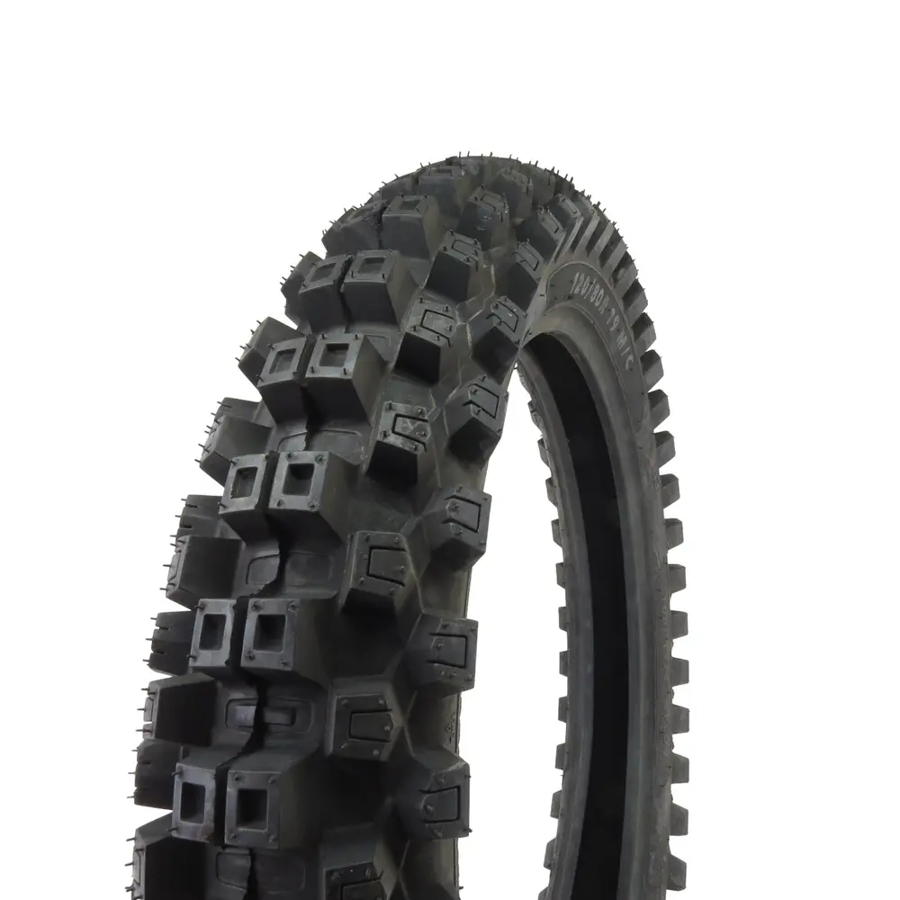 Розмір шини 120/80-19 вказує на її призначення як задньої шини для більшості сучасних мотокросових та ендуро мотоциклів. Ширина 120 мм забезпечує широку площу контакту з поверхнею, що покращує зчеплення та стабільність, особливо на м'яких ґрунтах. Профіль 80% гарантує достатню висоту боковини для ефективної амортизації ударів, захисту обода від пошкоджень та сприяє загальній стабільності на нерівностях. Діаметр 19 дюймів – це стандарт для задніх коліс позашляхових мотоциклів, що дозволяє використовувати широкий асортимент дисків та камер, а також забезпечує оптимальний баланс між прохідністю та маневреністю.