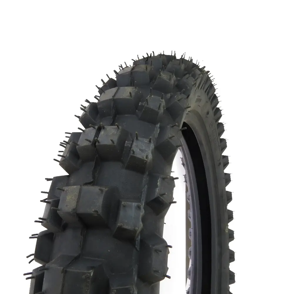 Розмір 100/100-18 є ключовим показником високої прохідності та відмінної амортизації. Ширина 100 мм забезпечує стабільну пляму контакту з поверхнею, тоді як співвідношення висоти профілю до ширини у 100% означає, що висота бічної стінки дорівнює ширині протектора. Це надає шині значний об'єм повітря, що істотно покращує поглинання ударів від нерівностей дороги, запобігає «пробою» шини на жорстких приземленнях та дарує неперевершений комфорт при їзді по пересіченій місцевості. Збільшена боковина також сприяє підвищеному зчепленню на м'яких ґрунтах та покращує стійкість до деформацій під навантаженням. 18-дюймовий посадковий діаметр ідеально підходить для задніх коліс багатьох популярних ендуро та кросових мотоциклів, забезпечуючи оптимальний баланс між маневреністю та прохідністю.