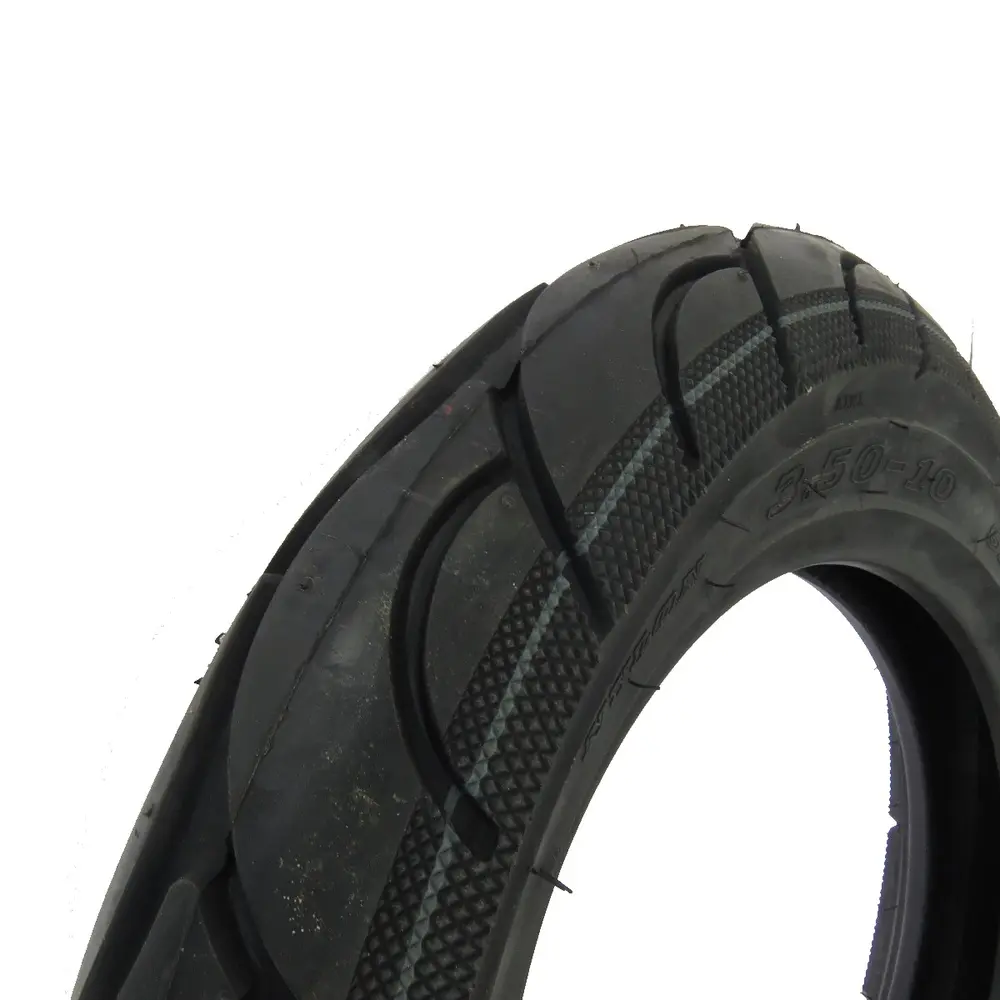 - Розмір 3.50-10: Цей стандартний розмір ідеально підходить для широкого спектра скутерів та мопедів з діаметром обода 10 дюймів. Ширина 3.50 дюйма забезпечує достатню площу контакту для відмінного зчеплення та стабільності на дорозі, дозволяючи вам маневрувати з легкістю у щільному міському трафіку.