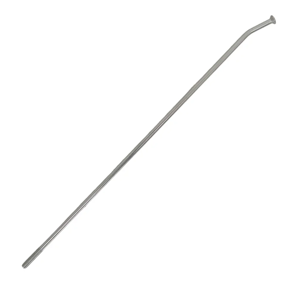- Кут вигину 20°: Цей кут визначає, як спиця вставляється у отвір маточини. Точний кут вигину 20° забезпечує ідеальне прилягання голівки спиці до фланця маточини, мінімізуючи напруження в місці згину та запобігаючи передчасному зламу. Для мотоциклів, що піддаються високим ударним навантаженням, такий точний підбір кута є життєво важливим для довговічності колеса.